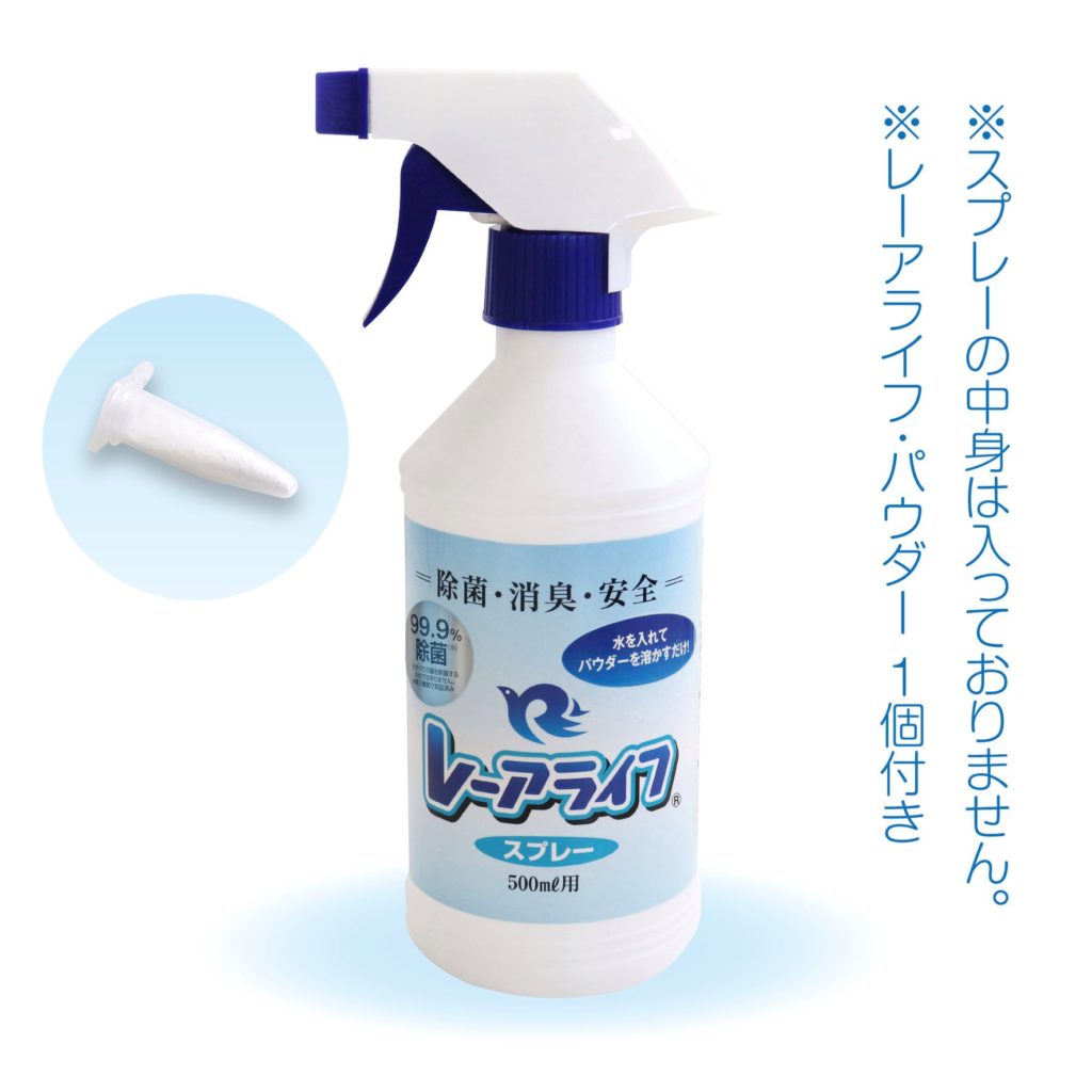 レーアライフスプレーが新しくなりました。(スプレーに液体は入っていません。付属パウダーを水で溶かせて使用)