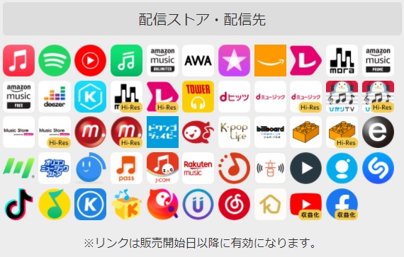 iTunes」「APPLEmusic」「amazon」「amazon music」等、全世界に向けて配信中です