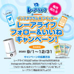 2020年9月1日 / 最終更新日時 : 2020年9月1日 shinnichieng information Twitter & Instagramフォロー&いいねキャンペーン開催! 『レーアライフ ツイッター & インスタグラムフォロー&いいねキャンペーン!』を開催いたします。2020.9.1〜12.31 《毎月抽選》期間中、レーアライフ公式TwitterまたはInstagramのアカウントをフォロ […]