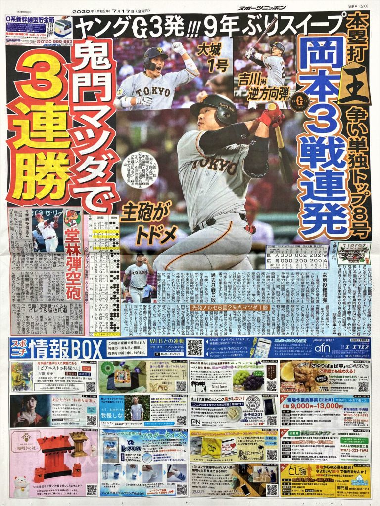 7月17日スポニチでの広告です。(令和2年7月17日)