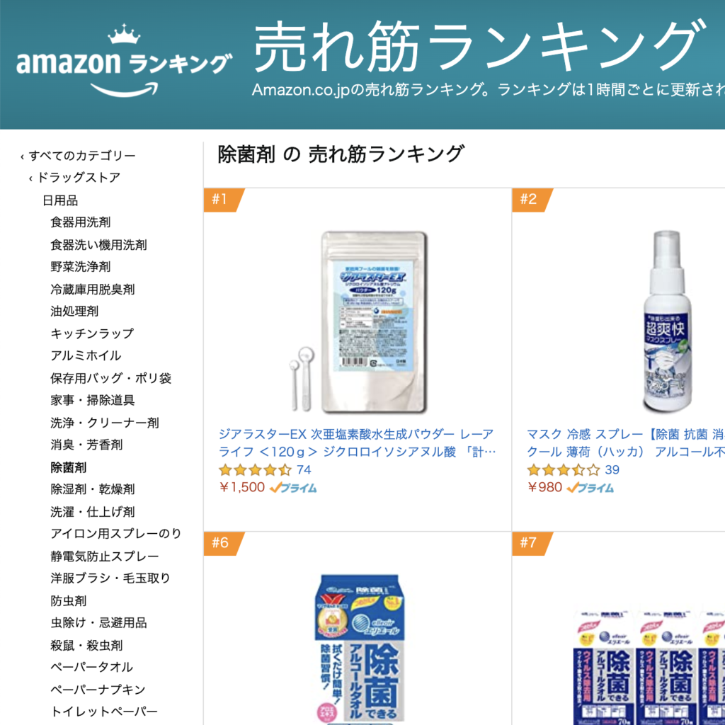正確には、ドラッグストア、日用品、除菌剤部門で1位を獲得しました。