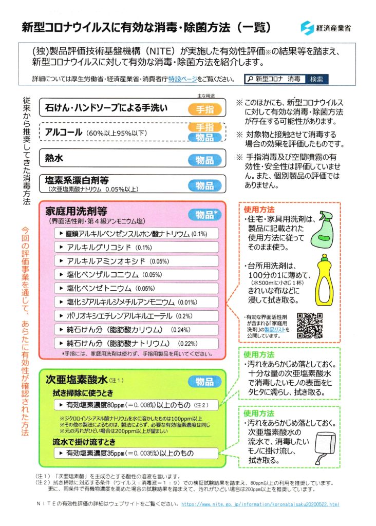 この様な憎き新型ウイルスにも、ジクロロイソシアヌル酸Naは効果があると経済産業省に発表していただきましたので是非活用して頂きたいです。