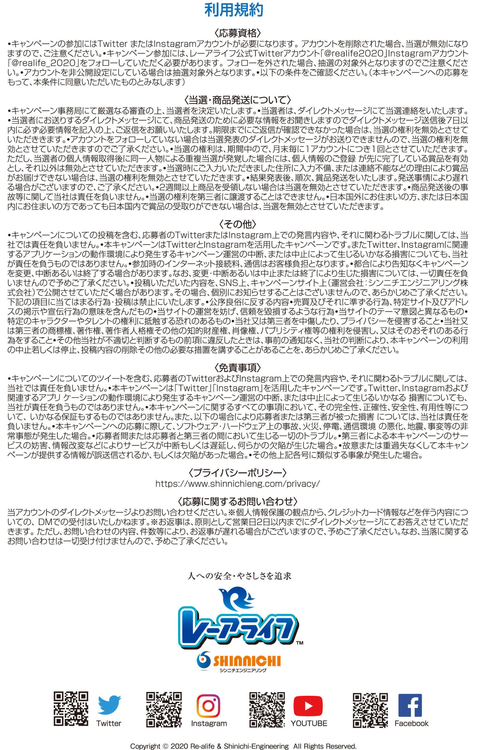 商品の詳細はこちらでご覧ください。↓↓↓ A賞:コントライン超音波式加湿器5ℓ| B賞:レーアライフ・プレミアム | C賞:レーアライフDX | D賞:レーアライフ〈通常版〉 レーアライフ公式 Twitter アカウントへ レーアライフ公式 Instagram アカウントへ プライバシーポリシーはこちら