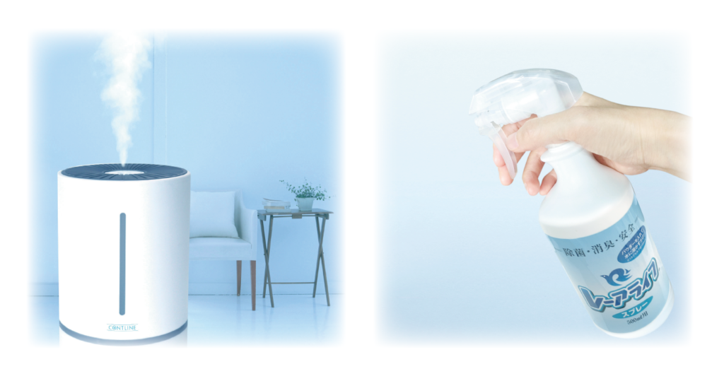 超音波式加湿器やスプレーボトル等でご使用いただけます。