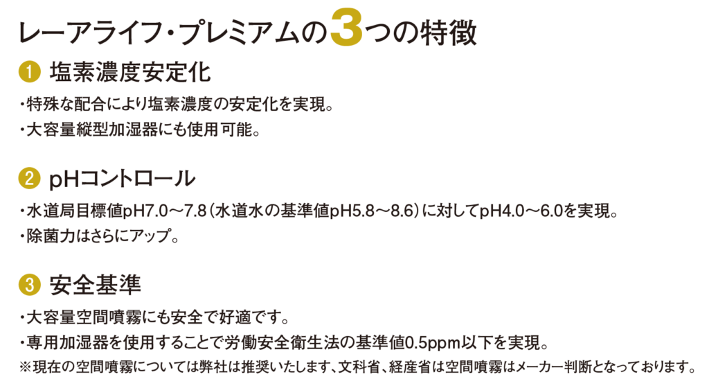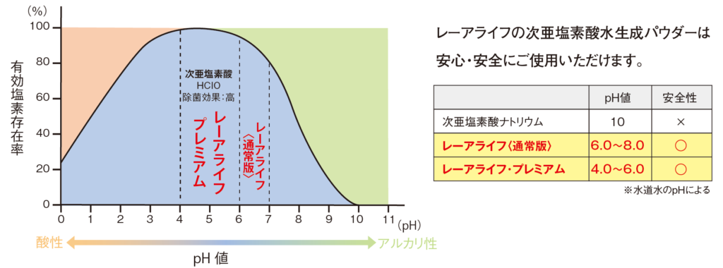 レーアライフとは次亜塩素酸ナトリウムを調整した水溶液等の混合物でありません。