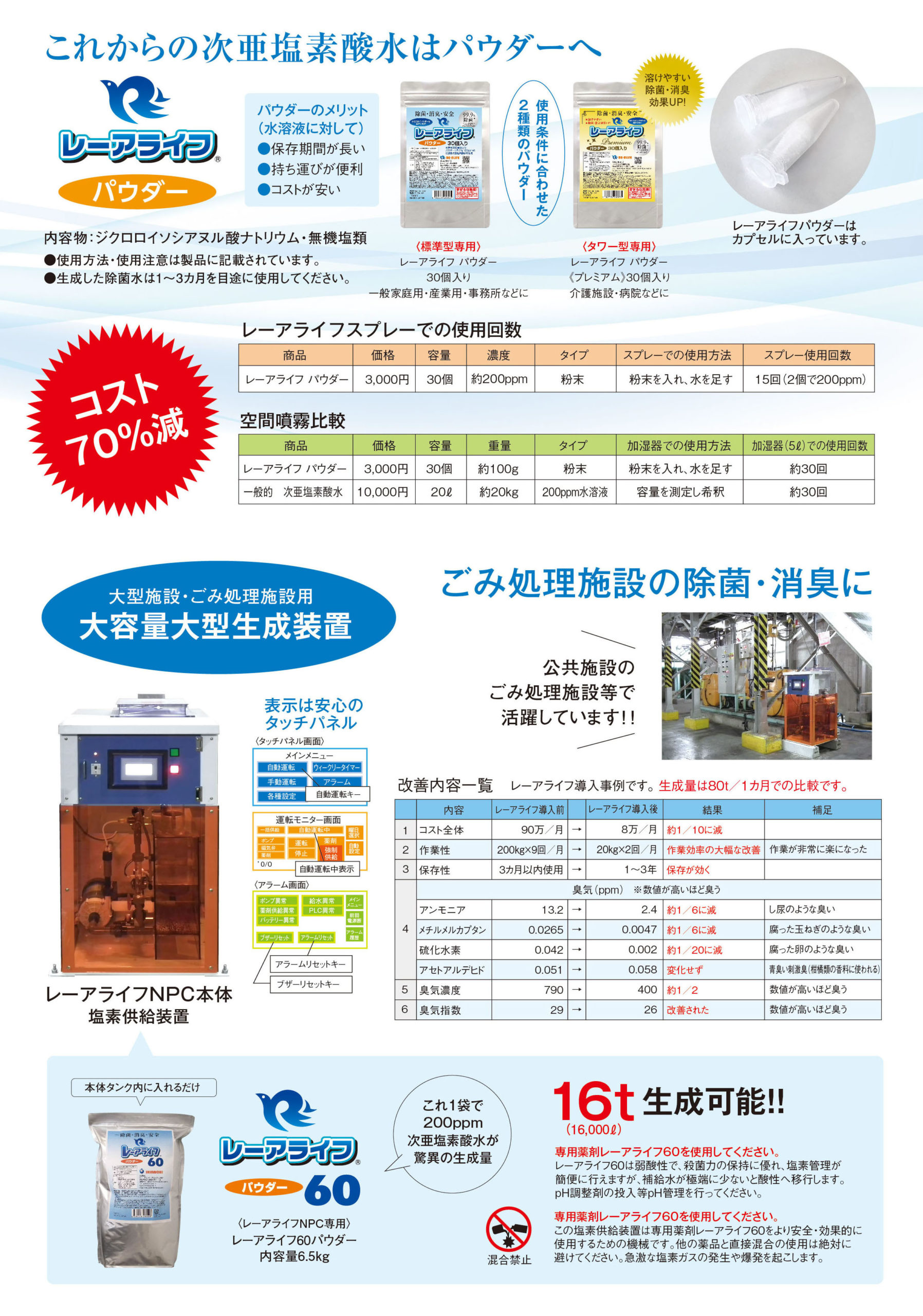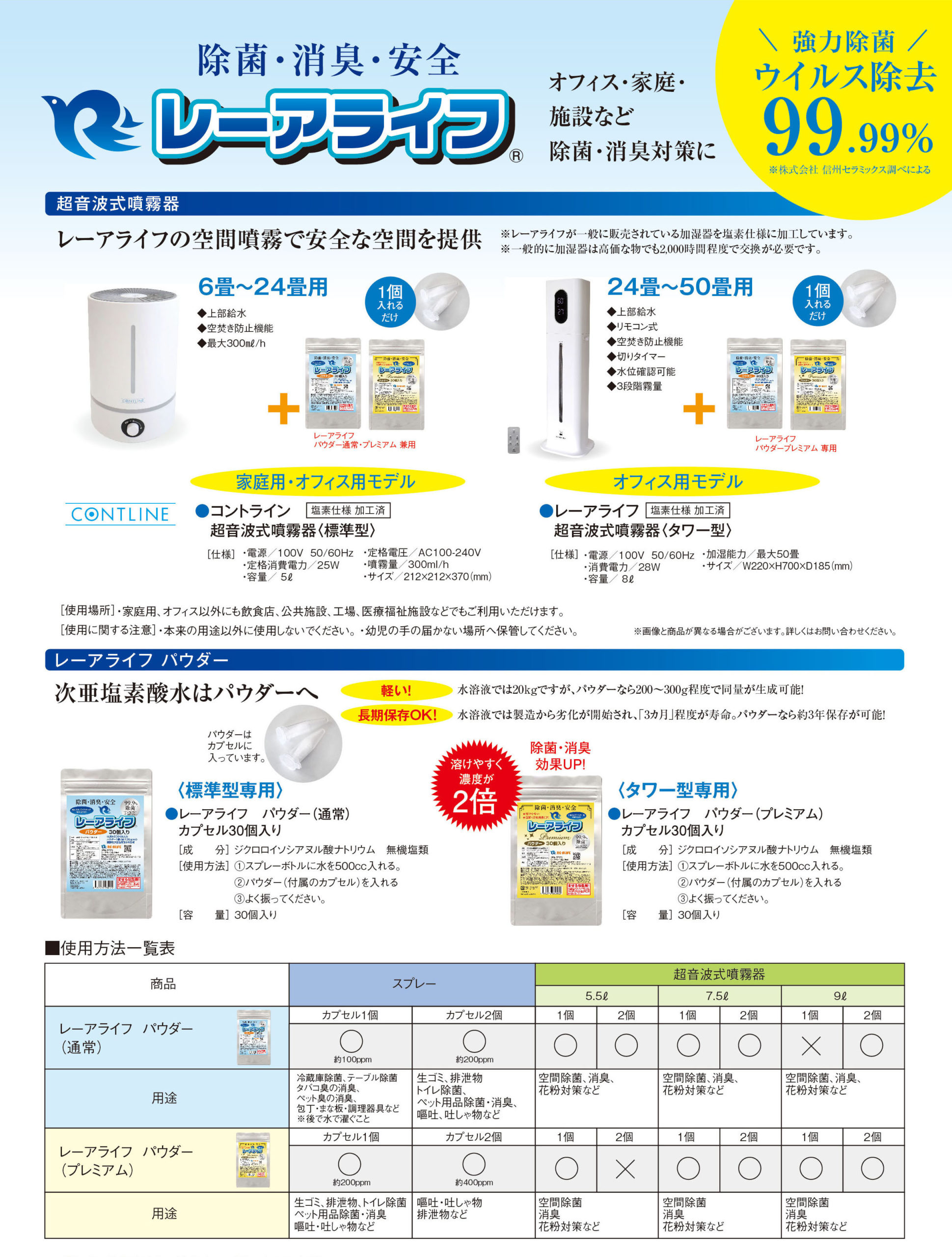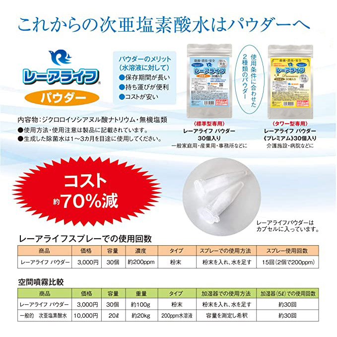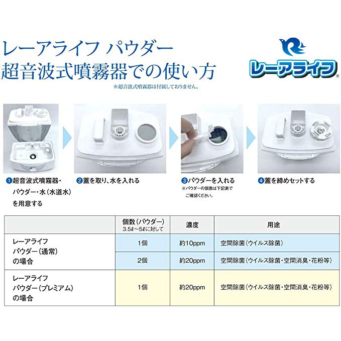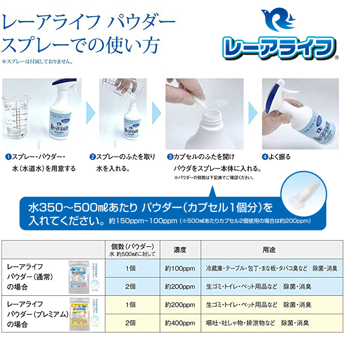 レーアライフ 商品ラインナップ●レーアライフ〈通常版〉●レーアライフ〈プレミアム〉●レーアライフ DX●ジアラスター EX ※すべての菌を除菌できるわけではありません。 ※すべての菌を除菌できるわけではありません。